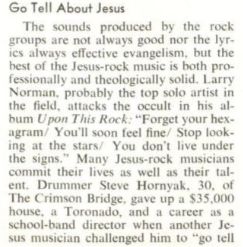 Mentioned a "Larry Norman" as probably the "Top Solo Artist" in the field